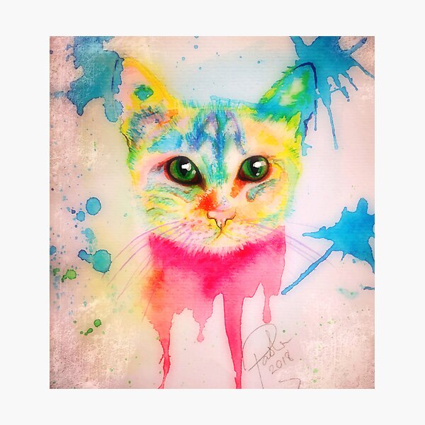 Watercolour painting Cat n Collar by iServalan Photographic Print