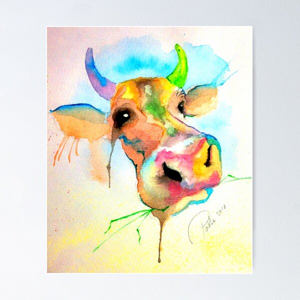 Moo Cow Happy Bull Watercolour Cute Bright Kids’ Toddle Poddle Illustration Poster