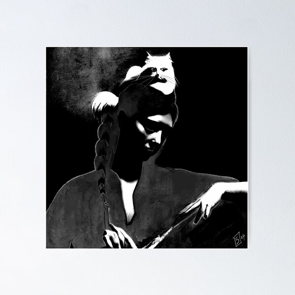 Cat on my Head Monochrome by iServalan for Tale Teller Club Music Poster