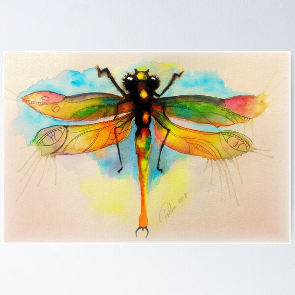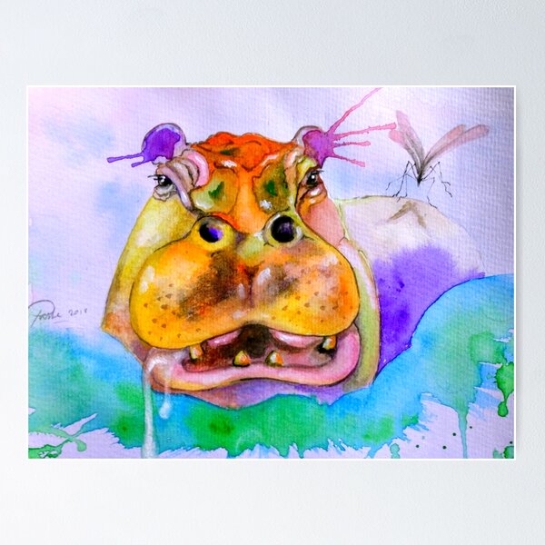 Happy Hippo with Crane Fly Watercolour by Tale Teller Club Books Poster