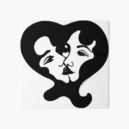 Kiss Kiss Lady Love Monochrome Logo Heart Retro 1960s Art Board Print