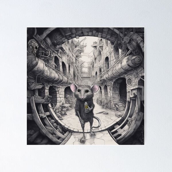 Rat Gang Crew Books Graf Artist in His Castle by iServalan in Greyscale Poster