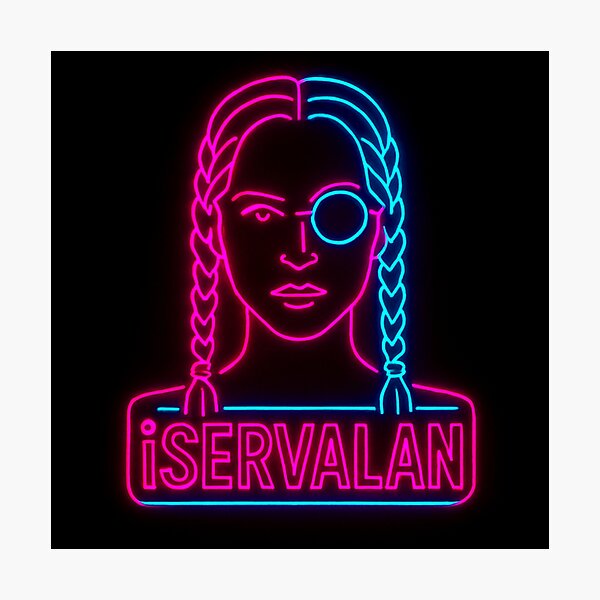 Cyan and Pink Lady with Monocle Neon Collection Tale Teller Club Merch Photographic Print