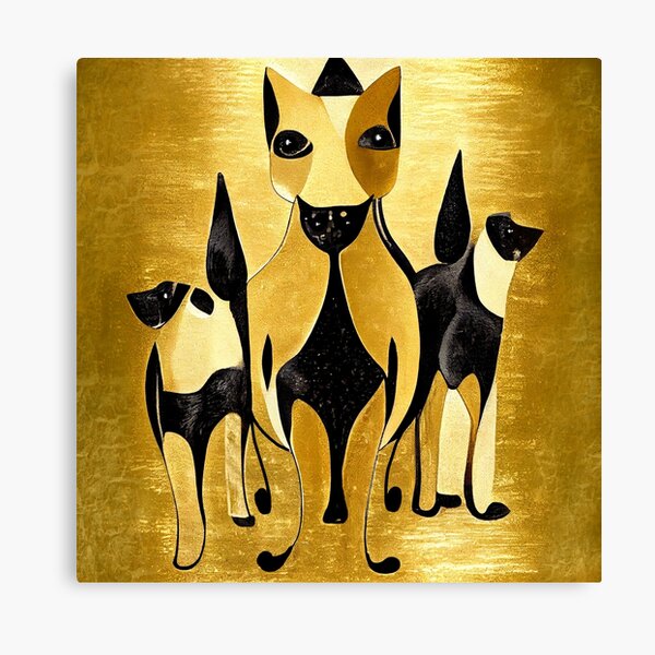 Cats in Black and Gold Leaf Art Pet Canvas Print